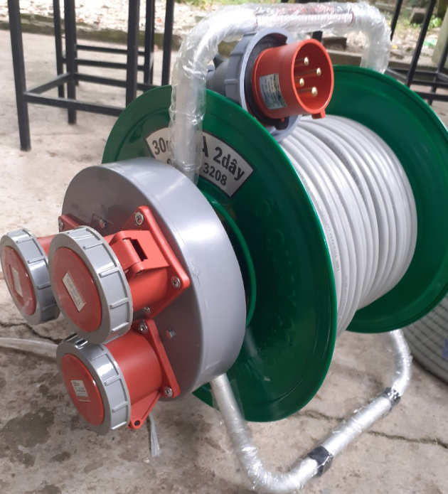 ổ điện rulo công nghiệp 3P-380v 50 métMặt 3 ổ cắm 3P+E 32A IP67 kín nướcDây điên 4x6.0mm2 cao su mềm tiêu chuẩn SQMMlắp ráp theo yêu cầu của khách hàngcác thông số khách có thể chọn tùy ý